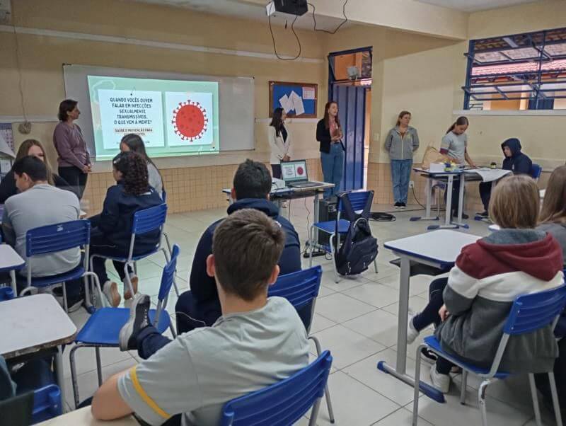 A ação foi conduzida pela médica Nicole Baldin, pela enfermeira Liziane de Mello Geller e pela psicóloga Fernanda Bergamin, que abordaram temas essenciais como formas de transmissão, sintomas, diagnóstico e medidas de prevenção. A atividade buscou incentivar o diálogo aberto e responsável sobre a sexualidade, destacando a importância do cuidado com o corpo, do uso do preservativo e da realização de exames preventivos.