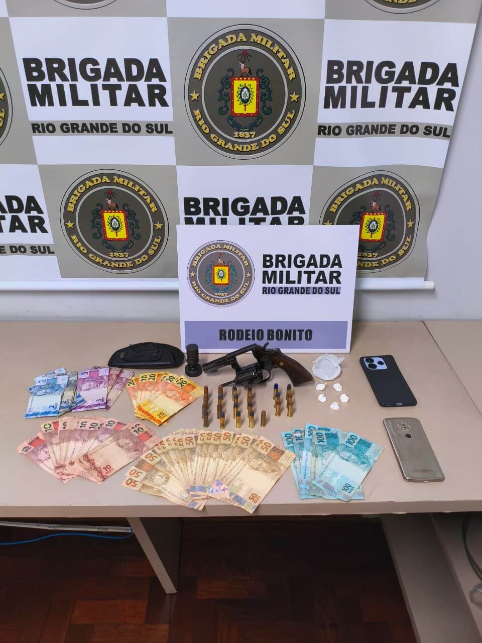 Na noite desta sexta-feira (17/4), a Brigada Militar efetuou a prisão de dois indivíduos, de 51 e 22 anos, pelos crimes de tráfico de drogas e porte irregular de arma de fogo, no município de Rodeio Bonito.