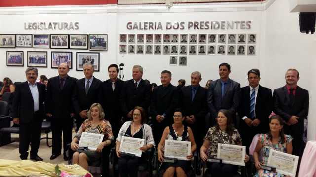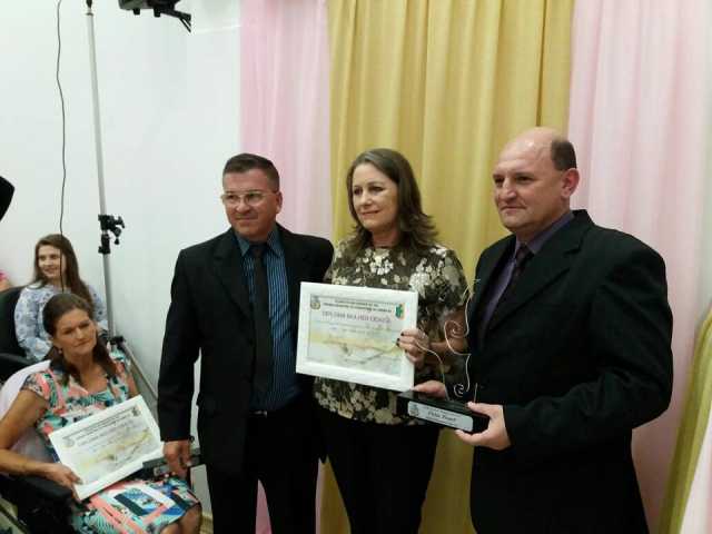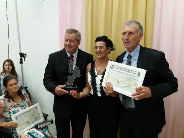 Entrega do Troféu Mulher Cidadã para Cecília Strieski, Delezia Lorencetti, Gelsira Tomczak, Rose Mary Tamanini e Mariza Balestrin